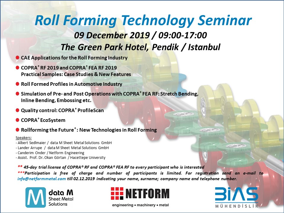Netform organizes "Roll Forming Technology Seminar" at The Green Park Pendik Otel / Istanbul on 09.12.2019 with the participation of data M Sheet Metal Solutions GmbH, which is vendor of COPRA® software and devices.